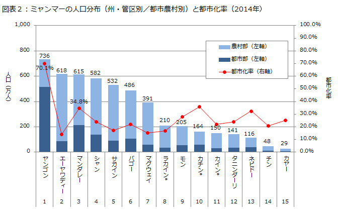 ①(図表1~7)2014年データの出所:Department of Population, Ministry of Immigration and Population of the Republic of the Union of Myanmar, Provisional Results, Census Report Volume (I), Population and Housing Census of Myanmar, 2014, August 2014より大和総研作成