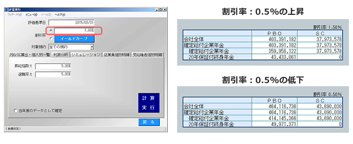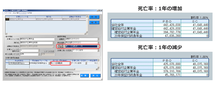 主要な基礎率(割引率、死亡率等)の変化が確定給付債務に与える影響を把握するための感応度分析が可能です。