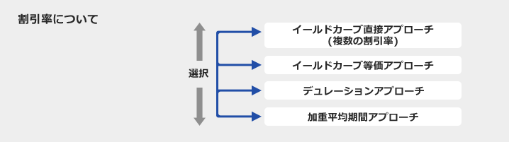 イールドカーブ直接アプローチ、等価アプローチ、デュレーションアプローチ、加重平均期間アプローチの中から選択することになります。すべての選択肢について、その定量的な差や実務運営について確認しておくことが必要です。