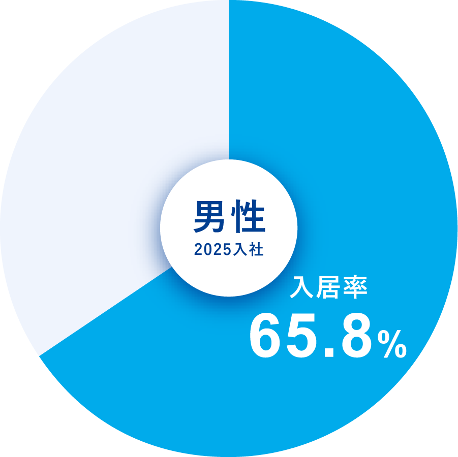 新卒社員のうち、独身寮に入寮している社員はどれくらいいますか?