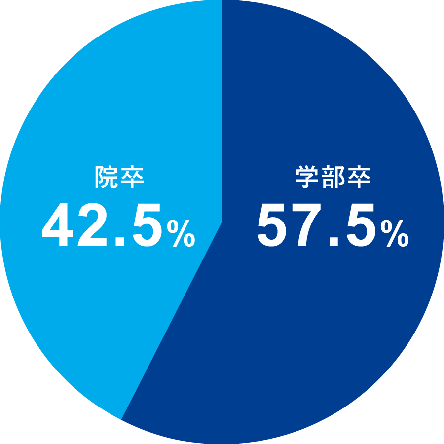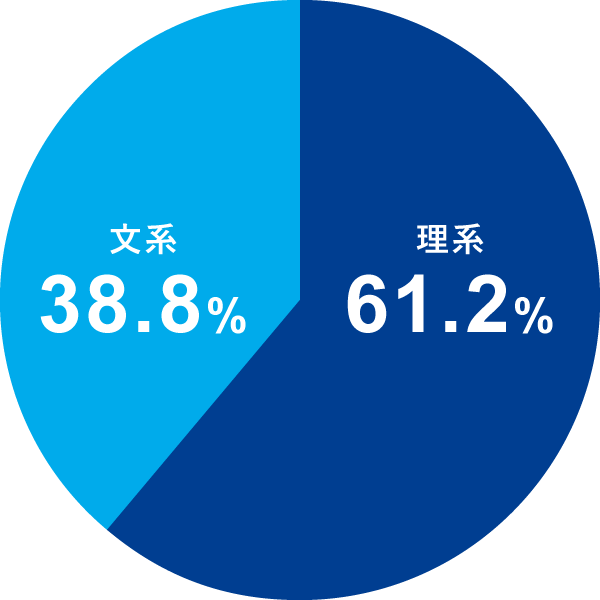 理系出身者の中には、情報処理やデータ分析だけでなく、数学・物理学・化学・生物学など専攻はさまざまです。一方で、文系出身者でもITスキルを独学で学ぶなど、多様なバックグラウンドを持つ方が入社しています。 ※2025年4月1日入社の新卒社員(総合職)における割合。