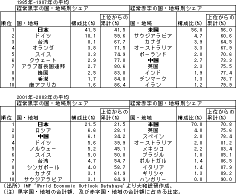 ◆世界の経常黒字・赤字に占めるシェア |