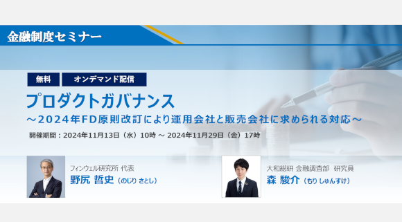大和総研 金融制度セミナー 『プロダクトガバナンス ~2024年FD原則改訂により運用会社と販売会社に求められる対応~』