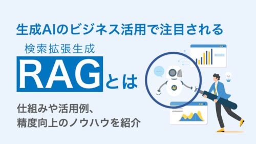 RAGとは、Retrieval Augmented Generationの略で、自社に蓄積された大量の業務文書・規定などの社内情報、外部の最新情報を活用する手段として、信頼できるデータを検索して情報を抽出し、それに基づいて大規模言語モデル(LLM)に回答させる方法のことです…